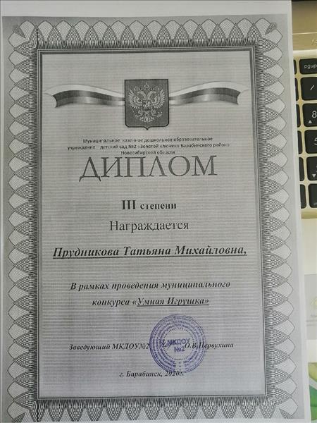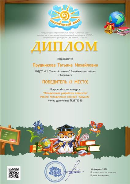 Всероссийский конкурс "Методическая разработка педагога Карусель" 1 место