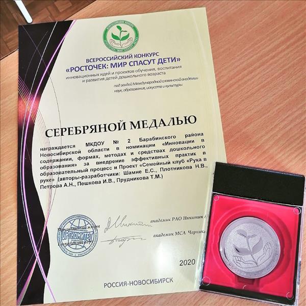 Всероссийский конкурс "РОСТОЧЕК: МИР СПАСУТ ДЕТИ". Серебряная медаль