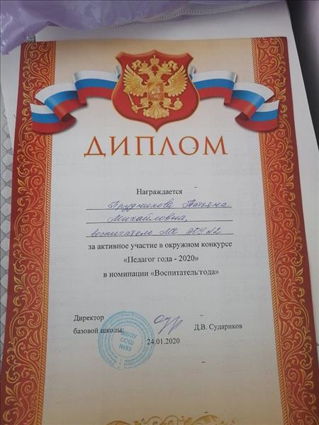 Окружной конкурс "Педагог года - 2020" в номинации "Воспитатель года"