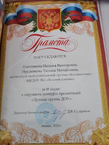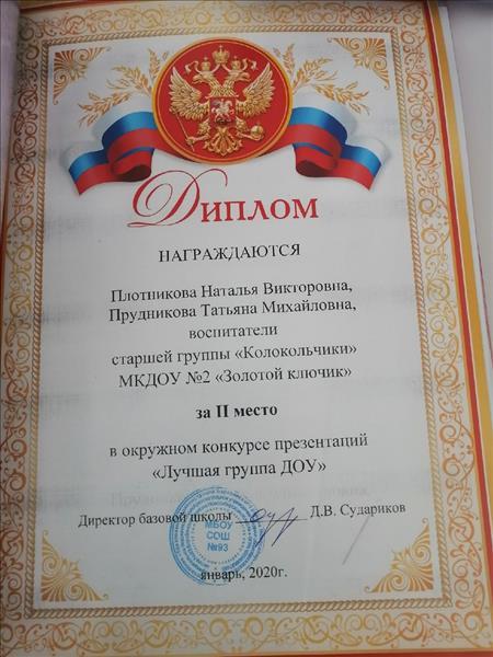 Окружной конкурс презентаций "Лучшая группа ДОУ" 2 место